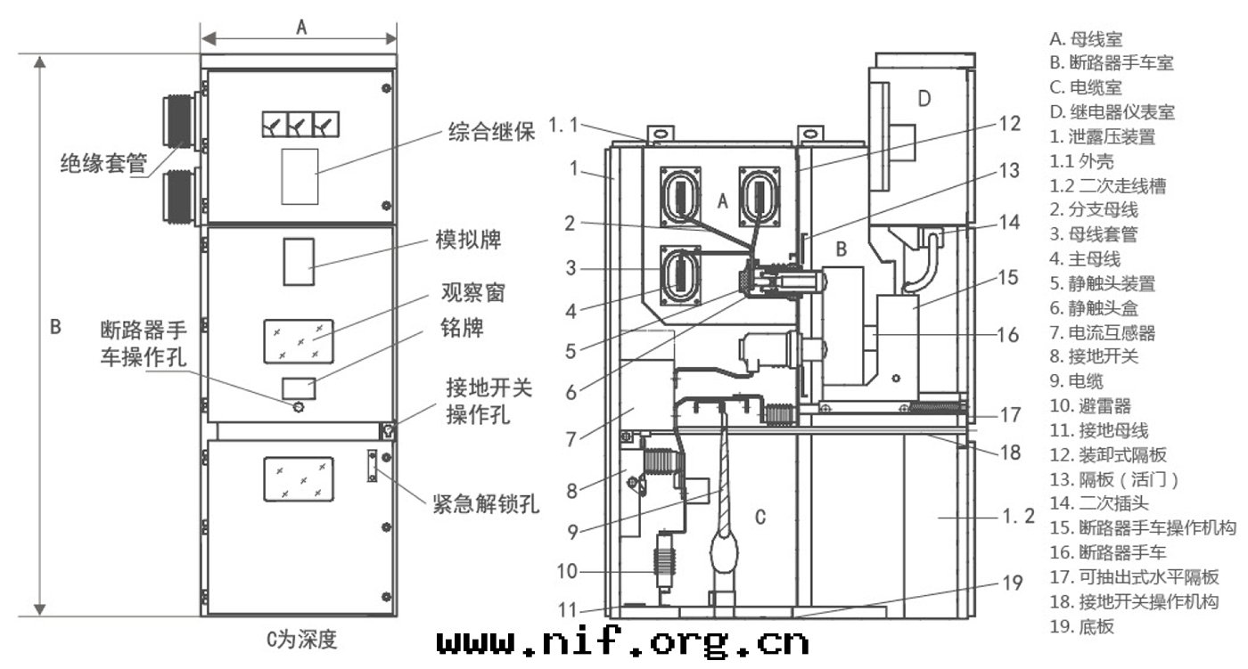 KYN28-12铠裝(zhuāng)移開(kāi)式交流金屬封(fēng)州開(kāi)關(guān)設備。它适用(yòng)于(yú)三(sān)相變(biàn)流額定(dìng)電(diàn)壓12kV,額定(dìng)频率50Hz電(diàn)力系(xì)統,用(yòng)于(yú)接受和(hé)分(fēn)配電(diàn)能(néng)並(bìng)对(duì)電(diàn)路實(shí)行控制、保護及(jí)監测。